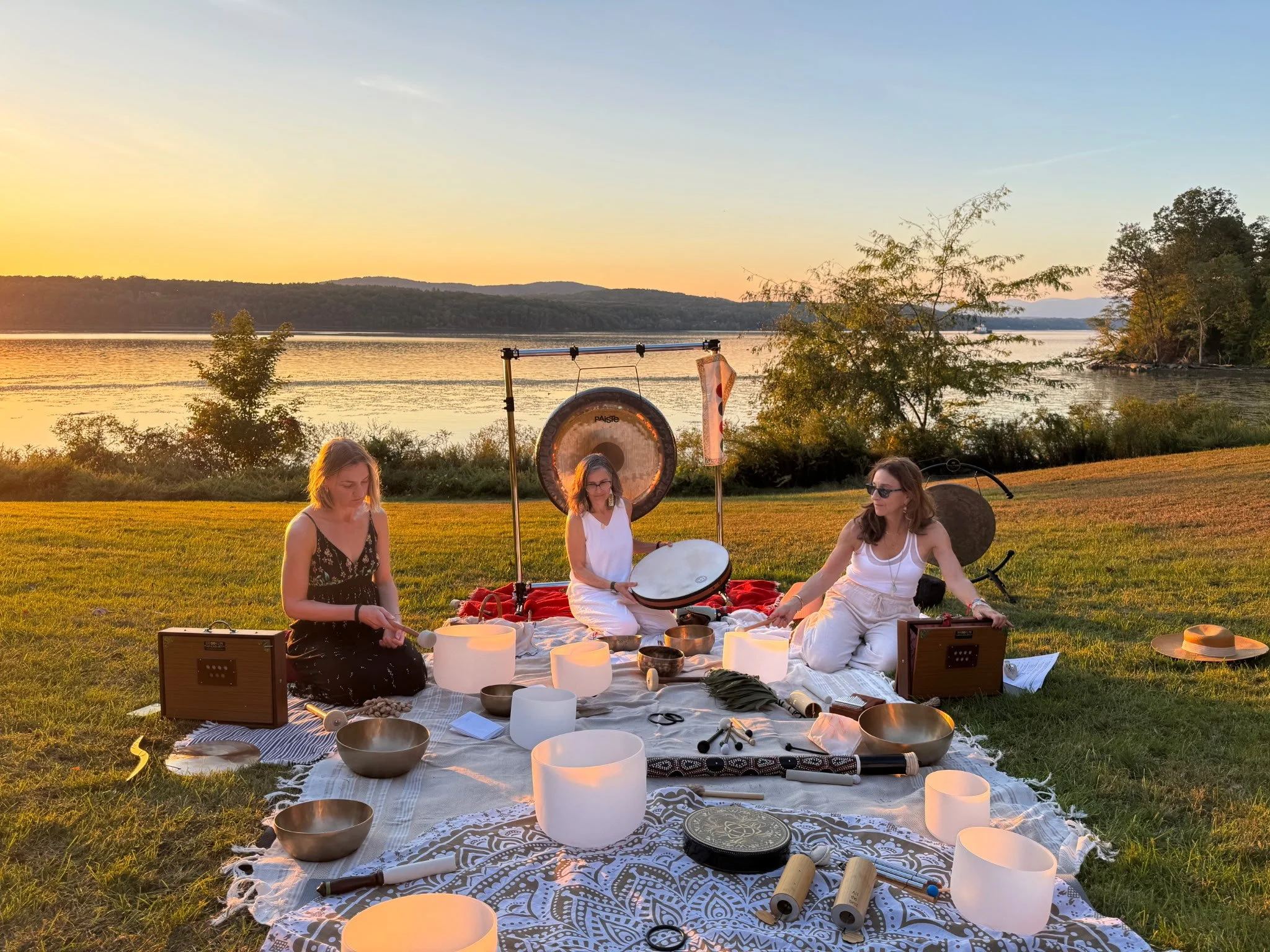 Kate, Katie and Stacie are certified sound and meditation practictioners. They have combined their unique human frequencies, talents and favorite instruments to create a trio they named Resonant River. They passionately and professionally use their metal and crystal bowls, gongs, shruti boxes, kalimbas, rattles, rain sticket etc to produce an alchemy of sounds and rhythms designed to promote well-being and healing.